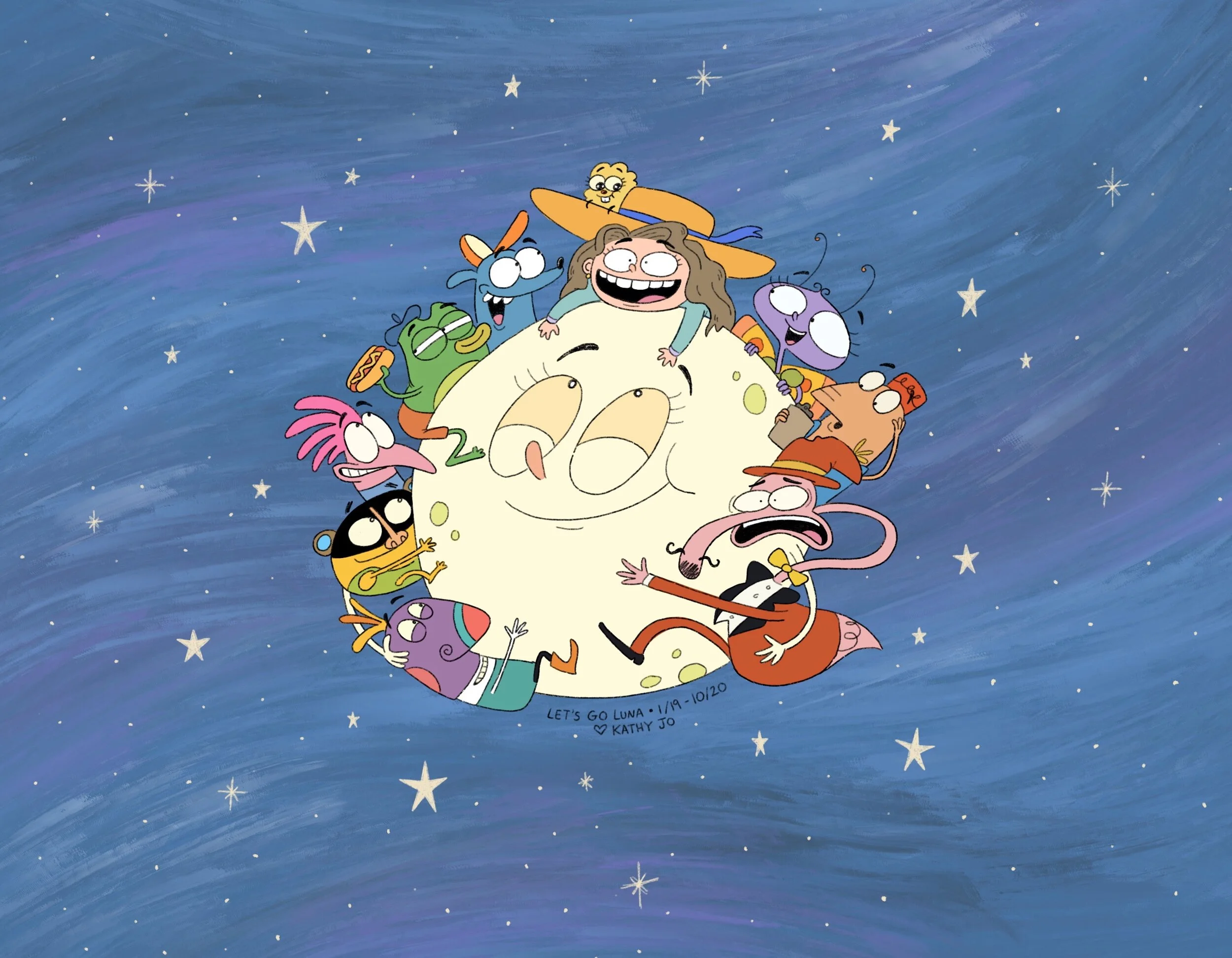 I know I’m a little late to post this but I wrapped up my job as Storyboard Director on Let’s Go Luna back in early October. I drew this little social media announcing it but somehow forgot to post it here.