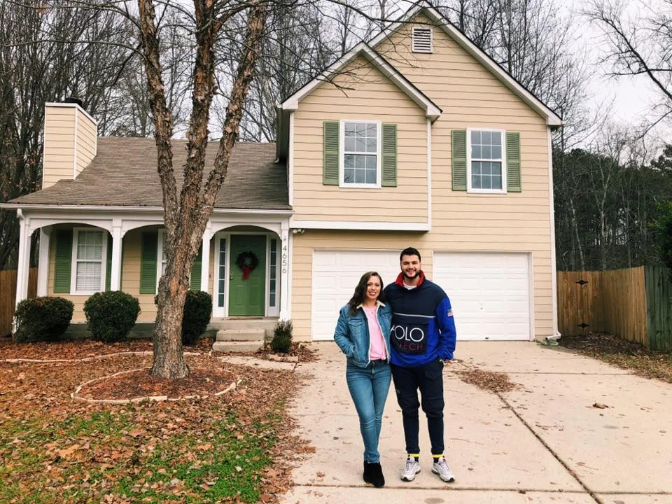My husband Tyler and I in front of our old house in Georgia (right before we moved). 2018.